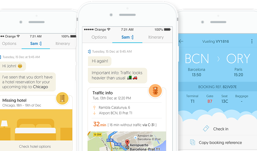 Sam will send you notifications when anything related to your trip comes up